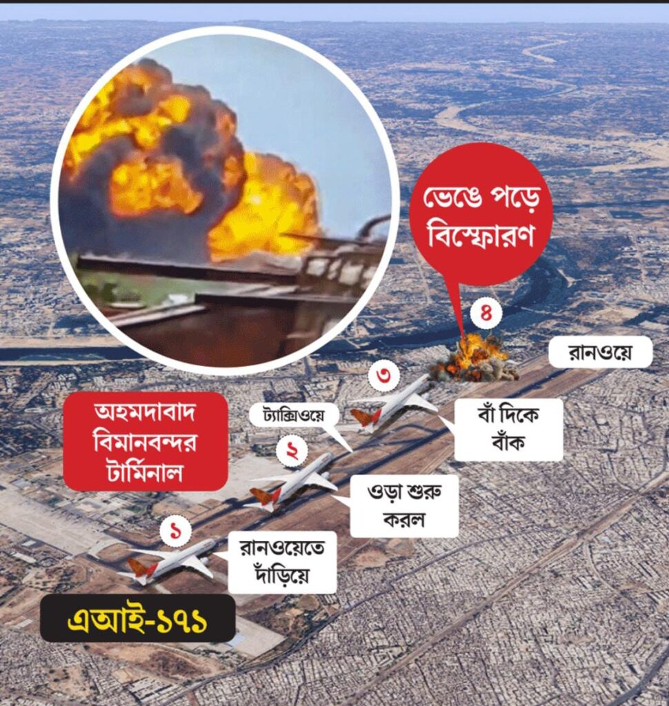রানওয়ে থেকে ওড়ার পরেই হঠাৎ ভেঙে পড়েছে এয়ার ইন্ডিয়ার বিমানটি। বৃহস্পতিবার দুপুর ১টা ৩৮ মিনিট নাগাদ ঘটনাটি ঘটে। কী ভাবে ঘটল গোটা ঘটনা, হাতে এল তার স্যাটেলাইট ছবি। রানওয়ে থেকে ওড়ার পরেই হঠাৎ ভেঙে পড়েছে এয়ার ইন্ডিয়ার বিমানটি। বৃহস্পতিবার দুপুর ১টা ৩৮ মিনিট নাগার ঘটনাটি ঘটে। কী ভাবে ঘটল গোটা ঘটনা, হাতে এল তার স্যাটেলাইট ছবি। গুজরাতে অহমদাবাদের সর্দার বল্লভভাই পটেল বিমানবন্দর থেকে যাত্রা শুরুর পাঁচ মিনিট পরেই ভেঙে পড়েছে লন্ডনগামী বিমানটি